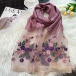 (紫)新款海棠花絲巾圍巾優雅海棠花刺繡