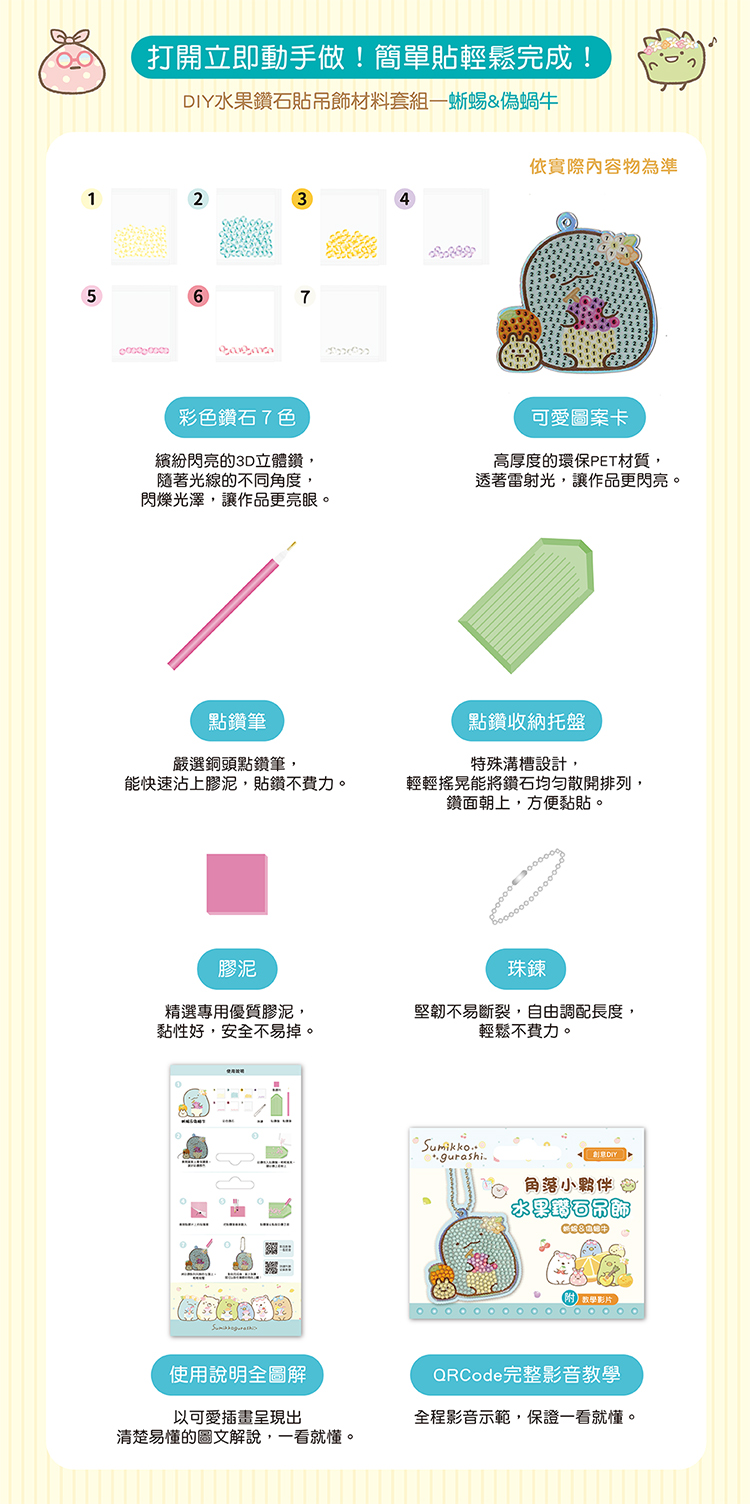 (蜥蜴&偽蝸牛)大風 角落小夥伴水果鑽石吊飾(附影音教學)