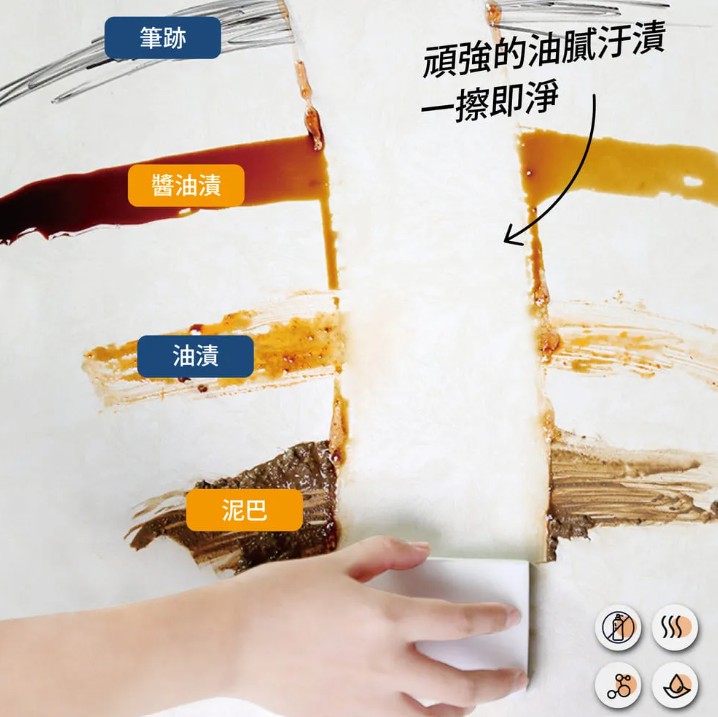 無論是油垢、灰塵甚至邊邊角角的頑強水垢,輕輕一擦、乾淨俐落!