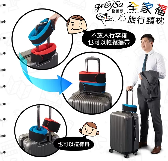 ◉出國出差商務旅行,GreySa格蕾莎全家福旅行頸枕簡單低調大方的設計,即使搭配正式服裝也不違和。