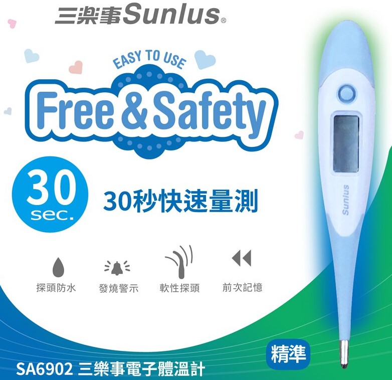 留言詢問(大螢幕)【SUNLUS三樂事】電子體溫計SP3902(防水功能/彈性軟頭設計/LCD大字幕清楚顯示)
