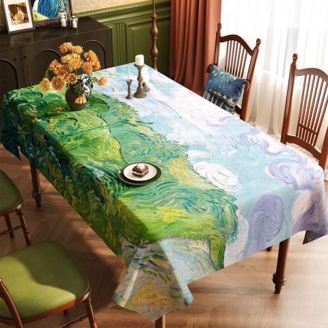 梵谷油畫風防水防油桌布(約140*180CM)桌巾