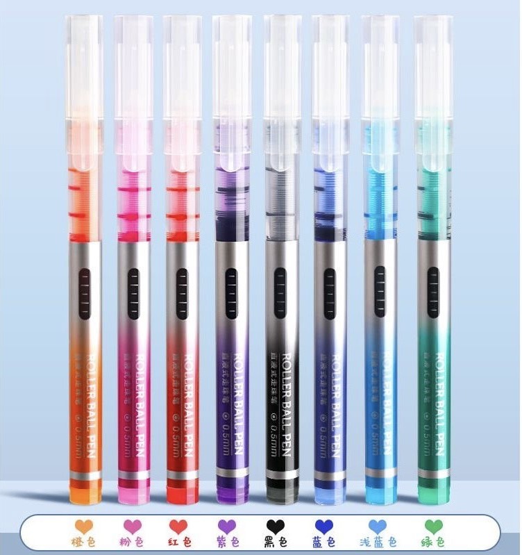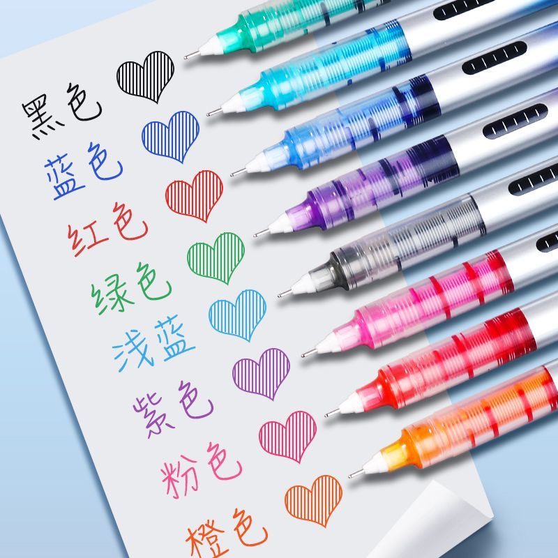 (8支/盒)得力直液式彩色中性筆|速乾不暈墨、書寫超順暢 國中小寫筆記專用