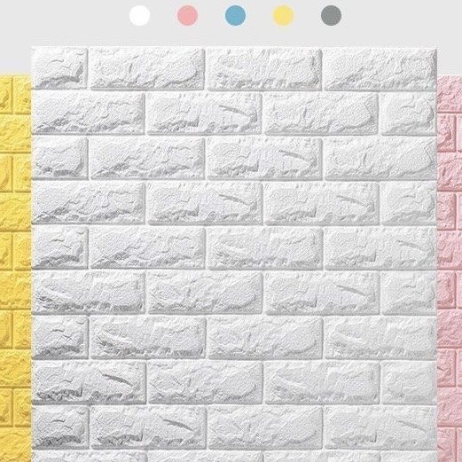 (10片/白色)3D立體泡沫磚自黏壁紙
