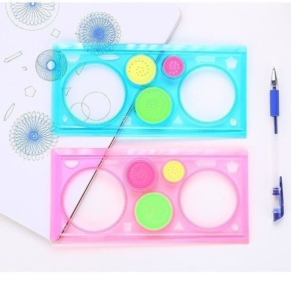 一款集合「萬花尺 × 圖形模板 × 繪畫工具」的創意文具組,小朋友只要放上卡紙+畫筆,就能畫出花朵、螺旋、幾何、星星等上百種圖案,超適合: