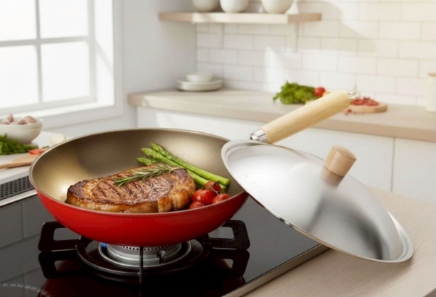 亮麗紅色搭配金色內層,兼具實用與美觀為廚房增添質感