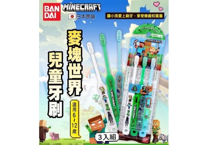 日本製造 BANDAI(6~12歲)麥塊3入組兒童牙刷
