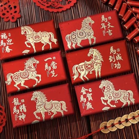 1220搶購價(橫式/6入)【2026馬年限定】創意中國風紅包袋/加購硬卡紙紅包