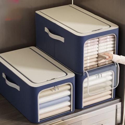 (特大)牛津布長方形衣物收納箱|前開透明視窗|拉鍊防塵|可堆疊|衣櫃床底整理