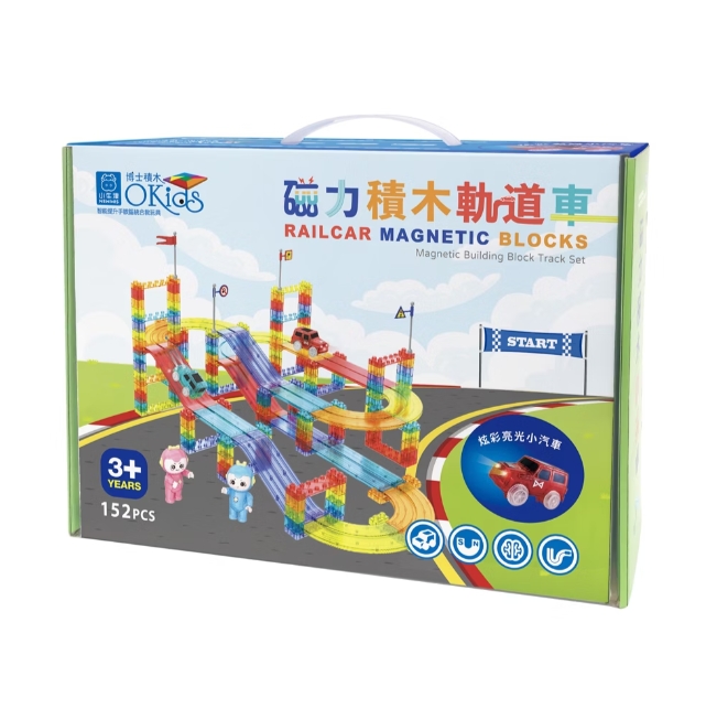 152pcs【Okids博士積木】磁力積木軌道車(積木+軌道+磁力片設計) ~可以玩賽車的磁力片!