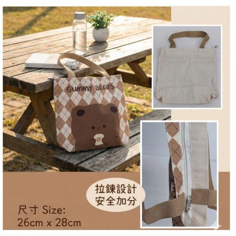 帶著呆萌小熊去散步!超實用拉鍊帆布小提袋