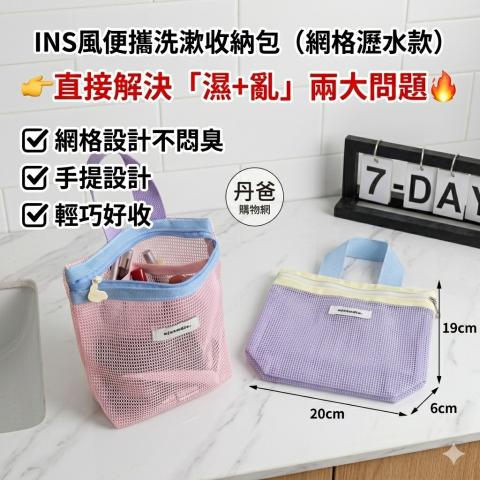 (不挑色)INS風便攜洗漱收納包(網格瀝水款)