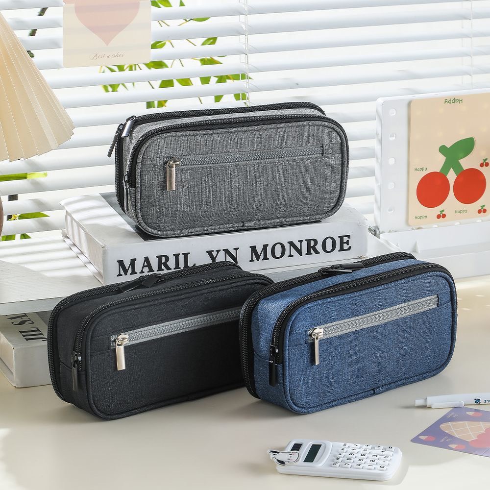 0412快閃價.(灰色)功能雙層大容量筆袋(三層文具收納