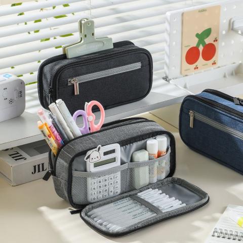 0412快閃價.(灰色)功能雙層大容量筆袋(三層文具收納